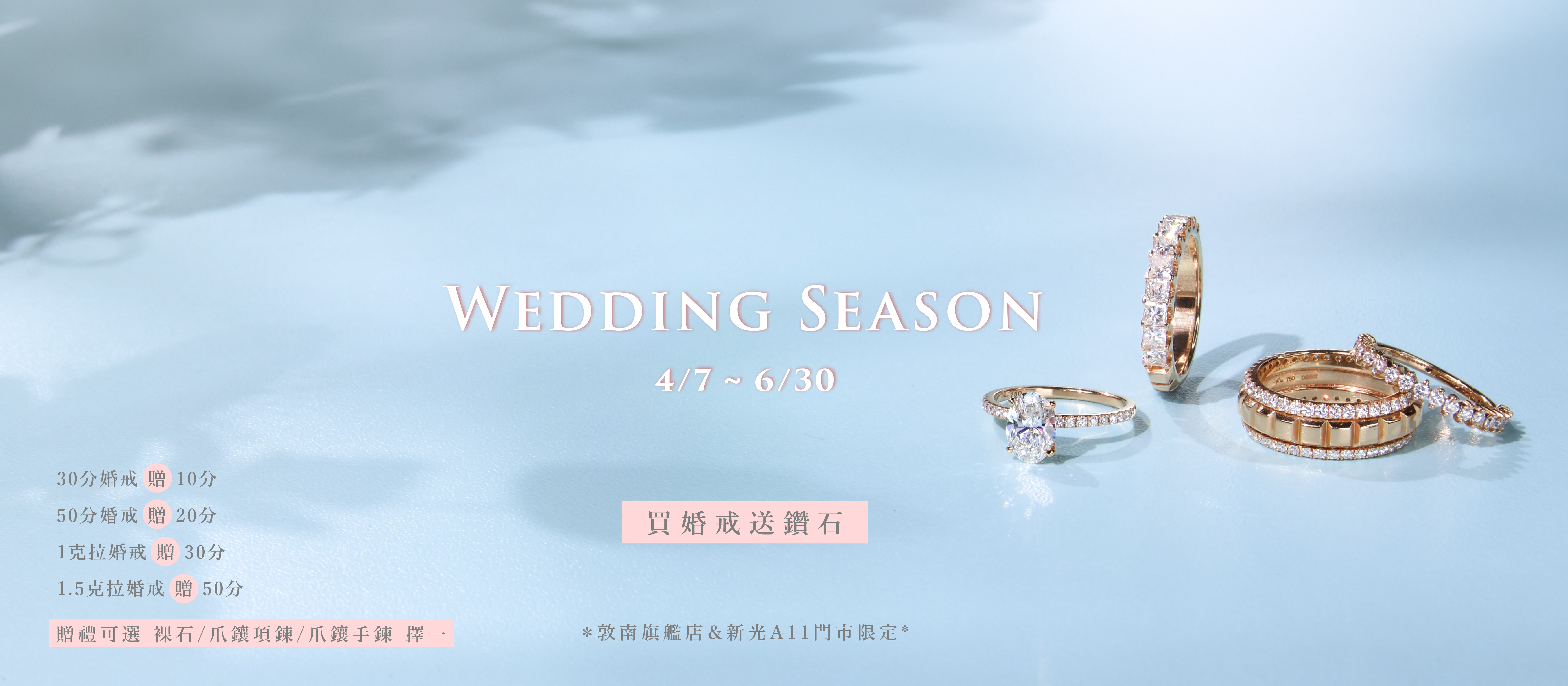 4/7~6/30 婚嫁季・為愛牽手 『 買 婚戒 送 鑽石 』