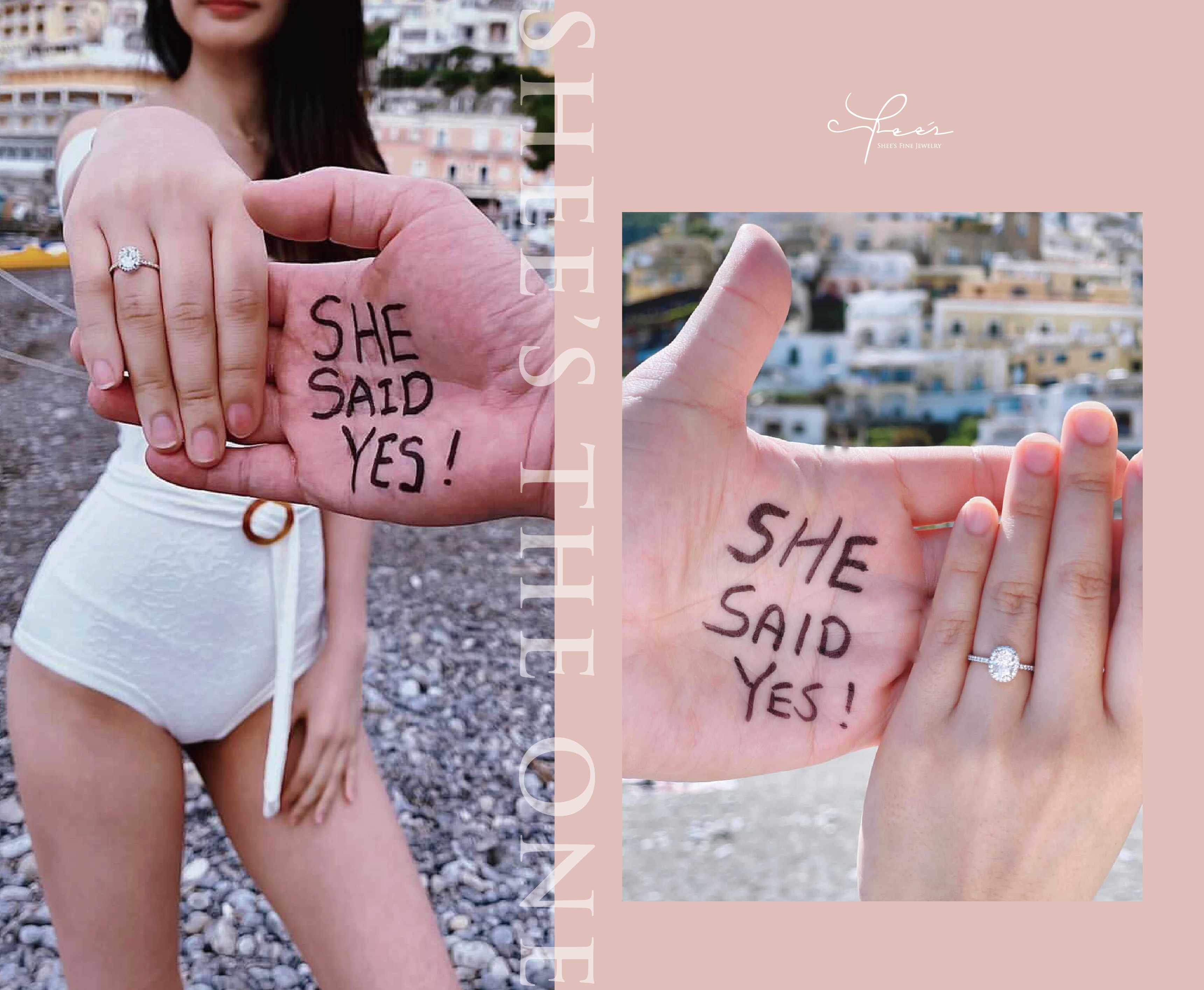 主鑽一克拉Halo款式橢圓鑽戒,將一圈小鑽石如同光圈般圍繞著中央橢圓鑽石鑲嵌,如此一來鑽戒會看起來更大、更耀眼,造就鑽石的盛大閃耀。