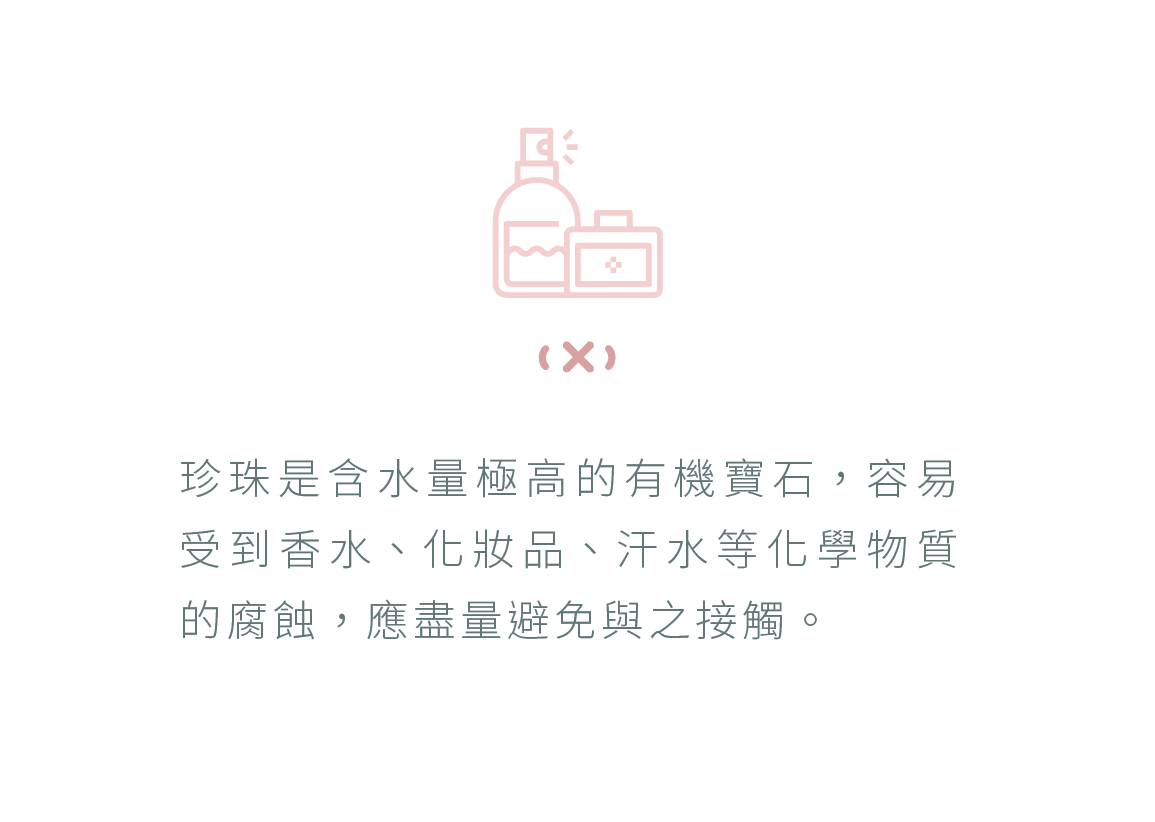 珍珠是大自然給予的至美珍寶,在經過長時間的積累與醞釀,才成為我們所見的珍珠。它是那樣的溫柔嬌貴,因此在保養上也必須非常注意。